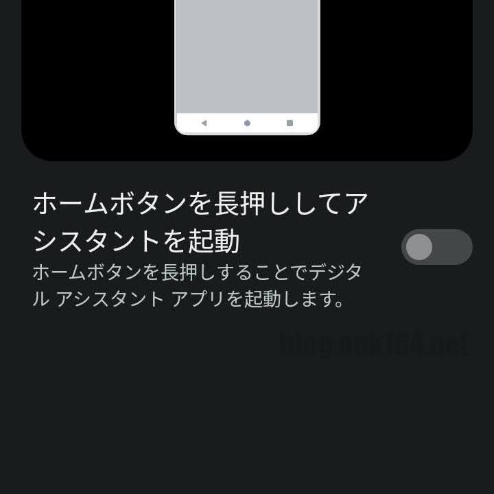 「なし」を選択することで、ホームボタン長押し、または電源ボタン長押しでアシスタントを起動させる設定を有効にしていても、何も起動しなくなります。