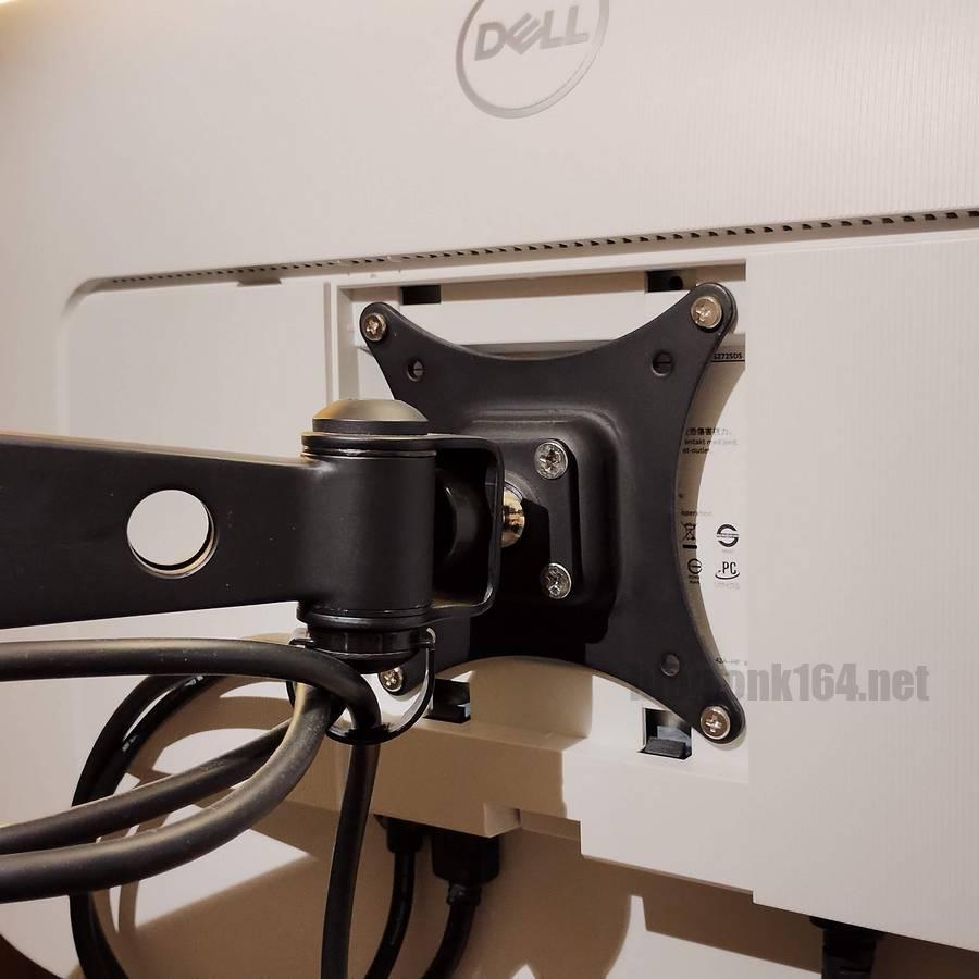 S2425HSにモニターアームのVESAプレートを取付けた様子