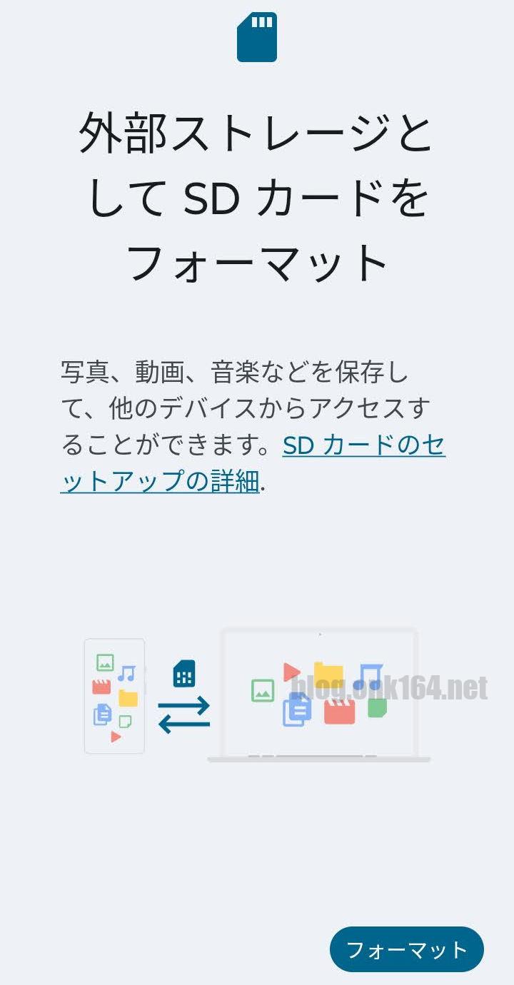 Androidスマートフォンで外付けストレージを使用(読み書き)するには、外付けストレージがAndroid用にフォーマットされている必要があります。