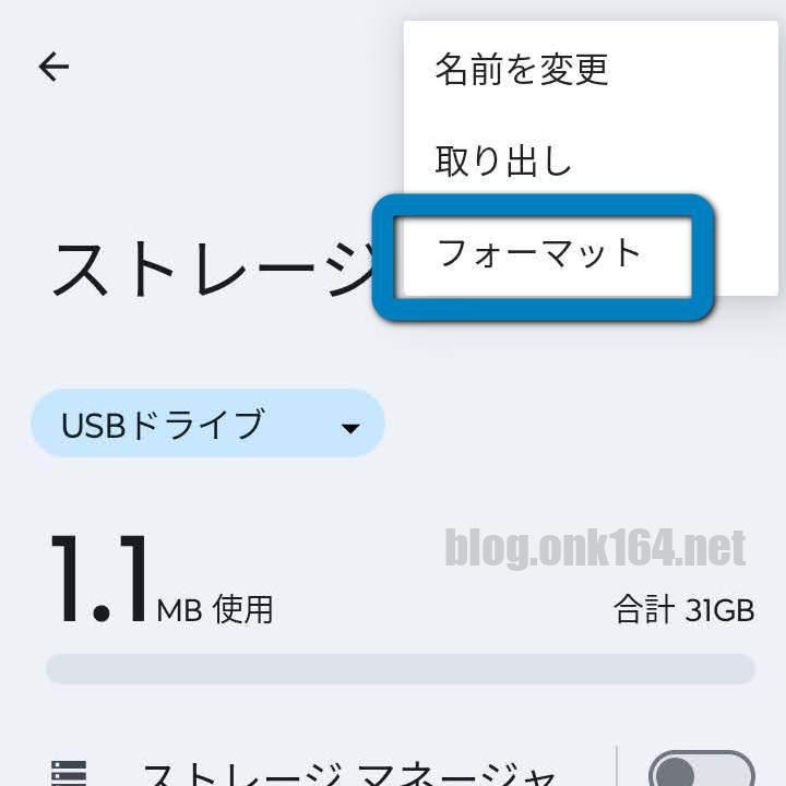- Android用にフォーマットされていないUSBメモリーをフォーマットする