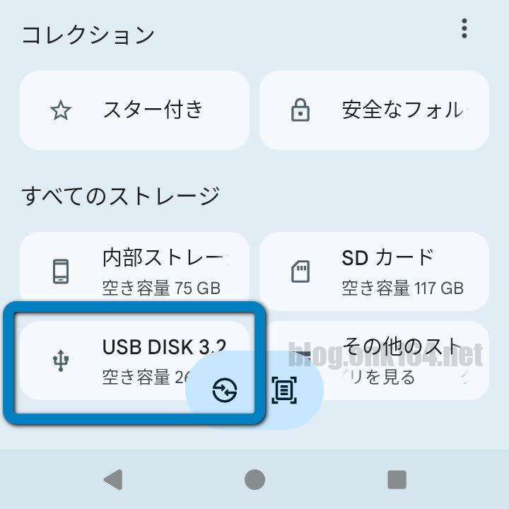 フォーマット方法は、こちらの投稿「Android 14スマホでUSBメモリーをフォーマットする方法。モトローラ moto g53j 5G 」をご覧ください。