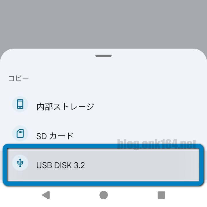 USBメモリーにコピーするので[USB DISK 3.2]をタップする。