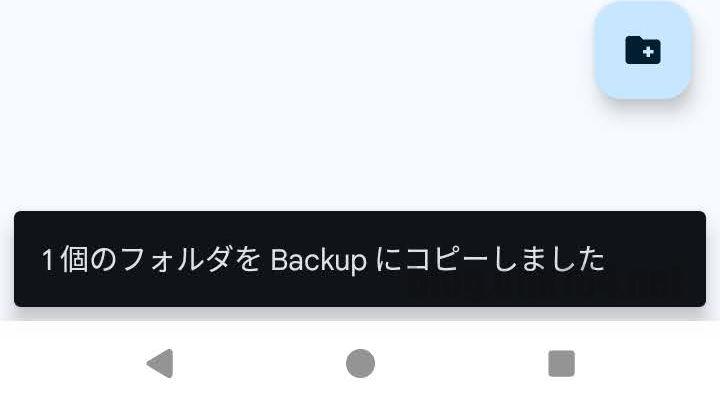 コピーが完了すると、画面下部に数秒間「1個のフォルダをBackupにコピーしました」という通知が表示されます。