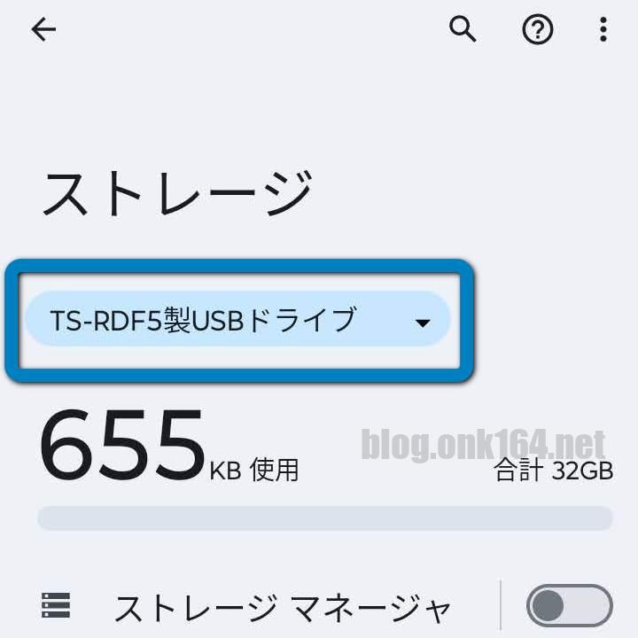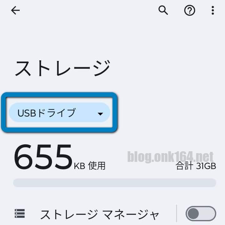 ストレージ管理画面で表示名は「USBドライブ」。