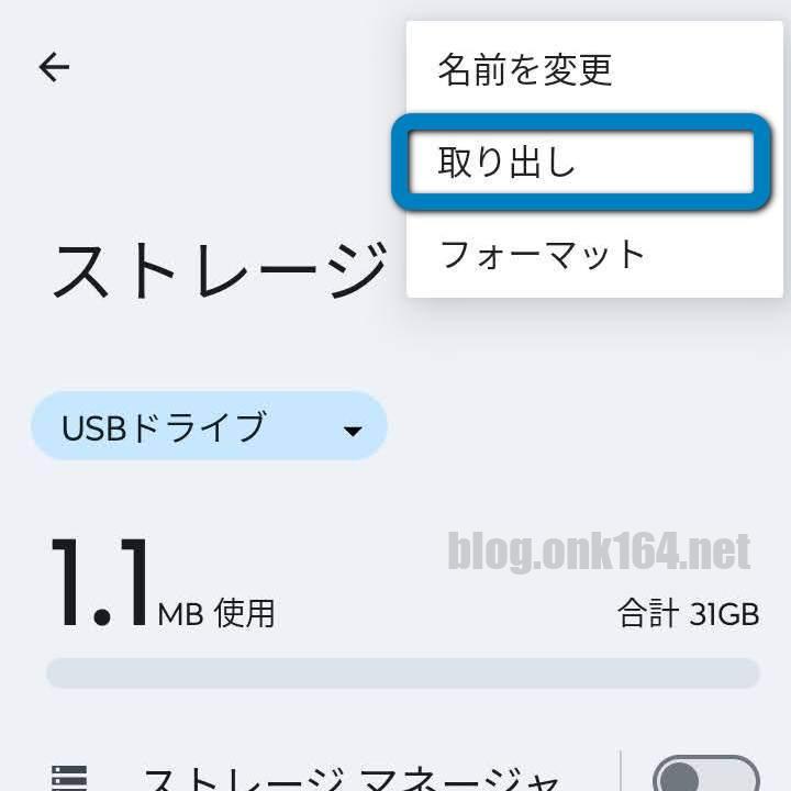 ストレージ一覧からUSBドライブの表示がなくなります。