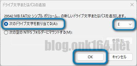 (●) 次のドライブ文字を割り当てる [E ▼]