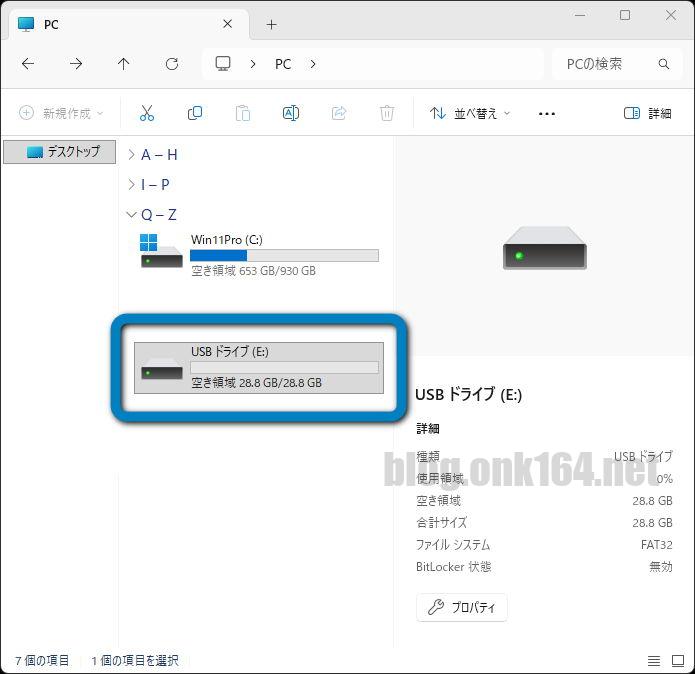最後に、ドライブ文字を割り当てたUSBメモリーが、エクスプローラーのPCに表示されたことを確認します。